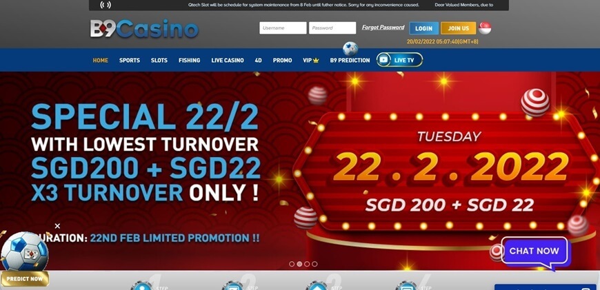 Upon inspection, the products offered by the online casino B9Casino (based on the dominant colors), we see that they are sports betting, live casino, 4D lottery, slot game, and fishing game. Let’s find out more about what they have!